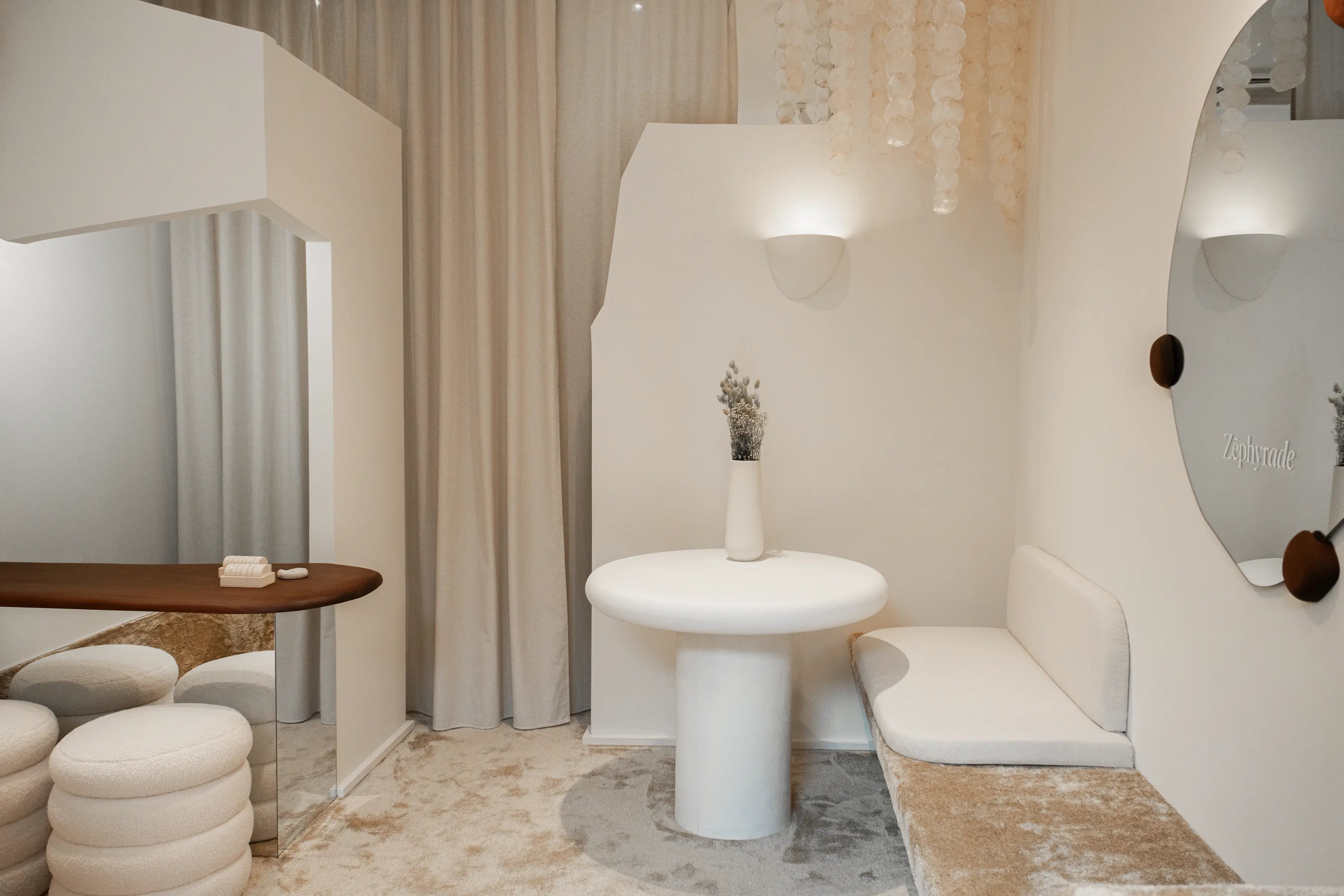 L’espace a été imaginé comme une parenthèse calme — un lieu de lumière, de matières naturelles et de silence doré, où chaque détail a été pensé pour vous accueillir avec douceur.