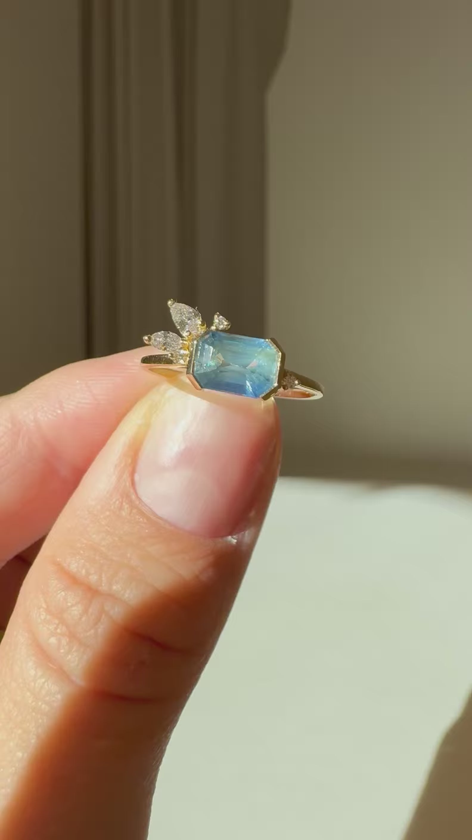 Un saphir bi-color, tel un ciel d’hiver traversé de lumière.